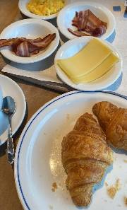 Te propose un petit déjeuner. Y a un buffet avec une petite formule a 6.90 ou Avec plus de 9 choses pour 9.50.